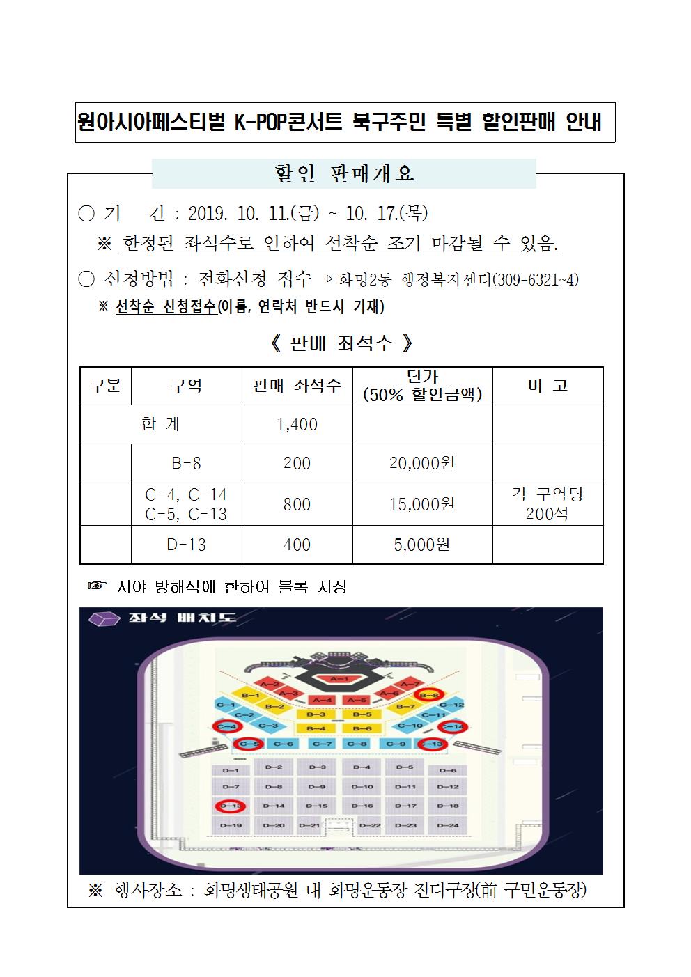 원아시아페스티벌 K-POP콘서트 북구주민 특별 할인판매 안내