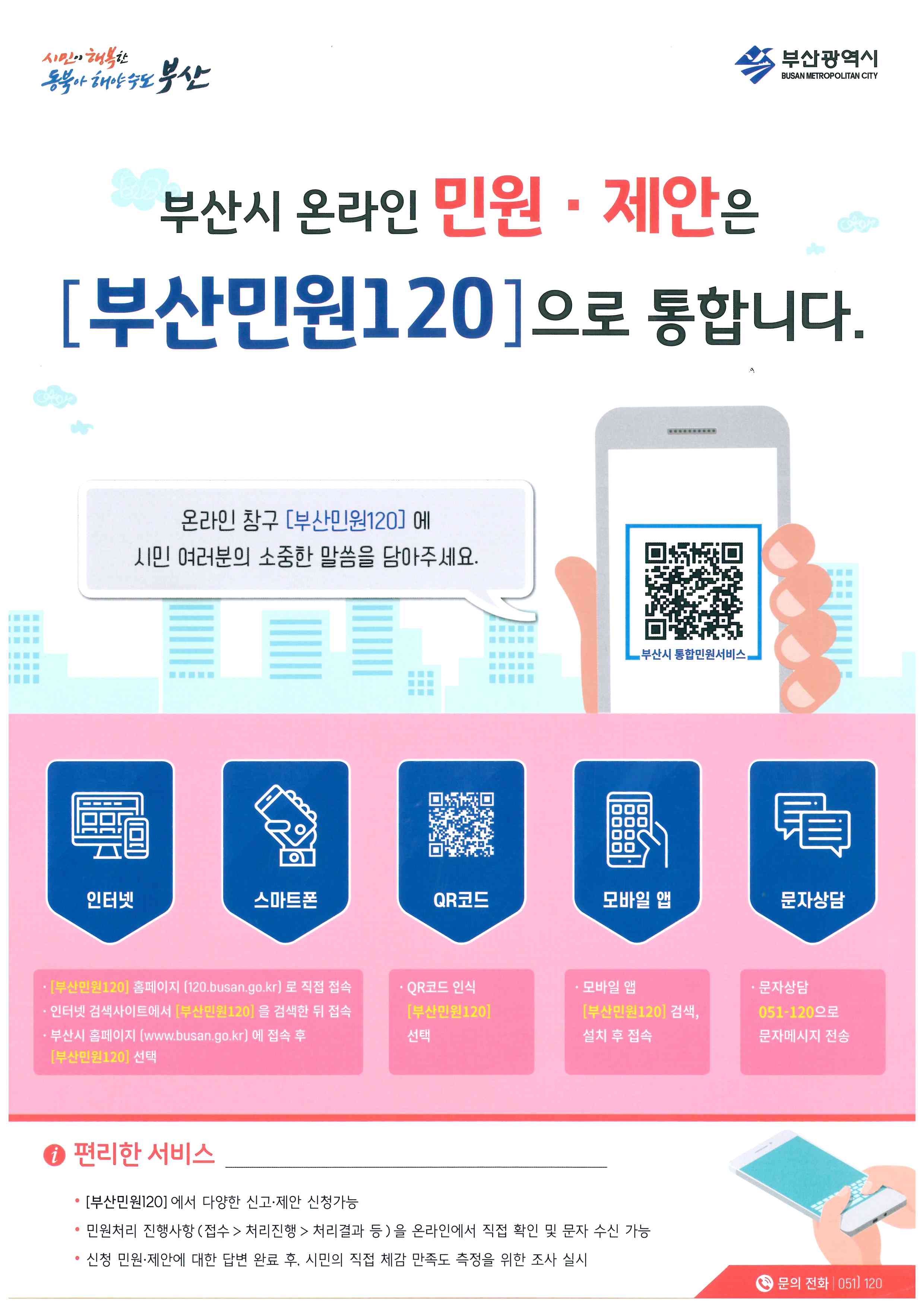 부산시 온라인 민원/제안은 『부산민원120』으로 통합니다.