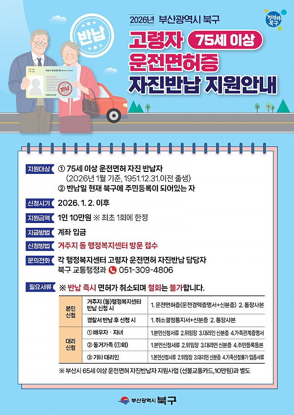 ♀ 따뜻한 하모니 함께 완성해 갈 #부산북구_여성합창단 의 새 단원을 모십니다. 우리 부산 북구 구립 여성합창단은 코로나19 대응이 한창이던 2021년에 창단했습니다. 그간 해마다 정기연주회를 개최하였고 타 지역 초청 공연과 여러 합창제 출연/출전하며 우리 구의 행사에도 단골로 초대되어 아름다운 하모니와 따뜻한 아우라로 한층 빛나는 시간을 선사해 왔지요. 또한 매년 새로운 멤버를 영입하며 진용을 다지고 역량을 키워오고 있는데요. • 우리 구 여성합창단은 매주 정기 연습 시간을 갖고 향후 대회 참가, 정기연주회 개최 등 다양한 활동을 해나가시게 됩니다. • 공지 드리는 현 시점 우리 구에 주소를 두시거나 사업장을 갖고 계신 만20세 이상 성인 여성이시라면 누구나 지원하실 수 있어요. ✅ 지원기한은 2025. 12. 23. (화) 18:00까지 • 응시원서 및 개인정보 수집·이용동의서 1부, 주민등록초본 1부를 제출해 주시면 되고 (서류 양식은 구청 홈페이지>새소식>고시공고란 참조) ✅ 부산 북구청 별관의 문화관광과를 방문하시거나 이메일로 접수(aj1050@korea.kr) 하실 수 있습니다. • 실기심사는 2025. 12. 29.(월) 14:00 부산 북구 문화예술회관에서 ※ 지정곡 '고향의 봄'(홍난파 곡)과 직접 고르신 자유곡 1곡으로 치를 예정입니다. 문의는 부산 북구 문화체육과 051) 3094065 삶과 음악을 사랑하는 우리 구 여성 여러분의 많은 관심과 참여를 기다리겠습니다.^^