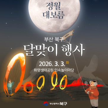 병오년 정월대보름 달맞이 행사 개최 3월 3일(화), 오후 3시부터화명생태공원 민속놀이마당오후 7시 달집 점화 예정 북구는 3월 3일(화), 오후 3시 화명생태공원 민속놀이마당에서 제31회 정월대보름 달맞이 행사를 개최한다. 이번 정월대보름 달맞이 행사는 낙동문화원이 주최·주관하며, 구포 지역에서 오랜 세월 전승돼 온 정월대보름 달집태우기를 민속문화 행사로 계승·발전시키기 위해 마련됐다.북구는 병오년 새해를 맞아 한 해의 무사 안녕과 풍요를 기원하던 우리 조상들의 뜻을 되새기고, 지역 공동체의 화합을 도모하고자 이...