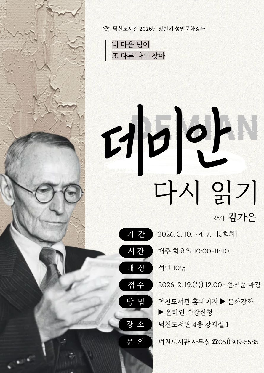 | [덕천상반기성인] <데미안 다시 읽기 - 내 마음 넘어 또 다른 나를 찾아서 -> | |||